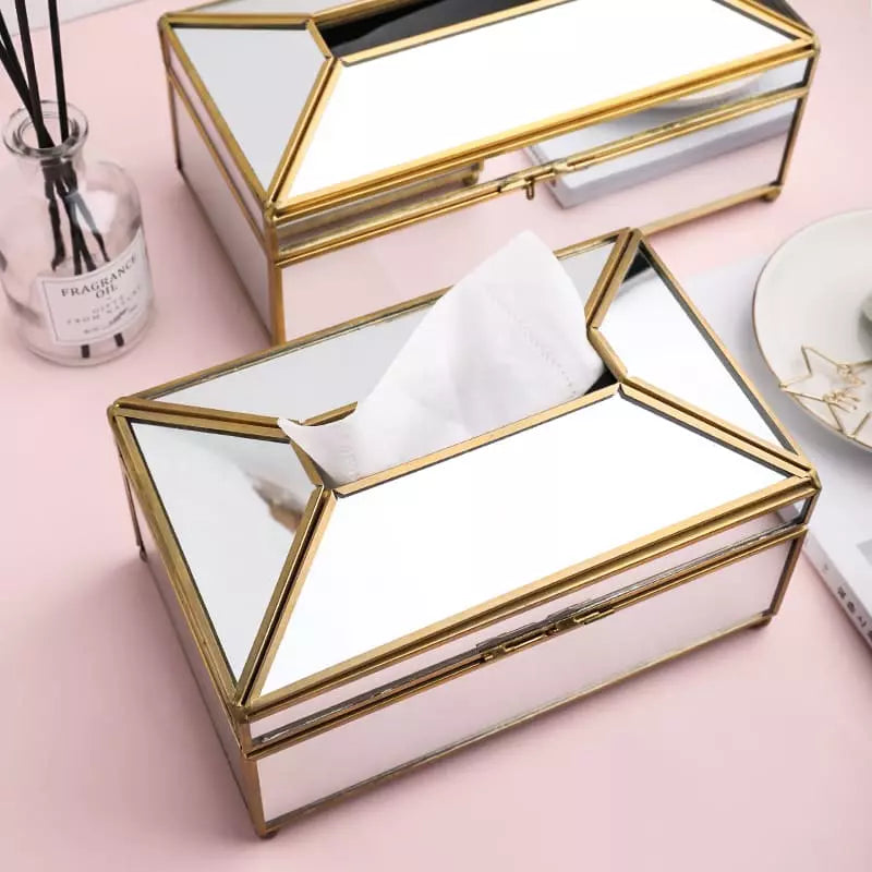 Caixa Porta Lenços Umedecidos em Cobre com Espelhos