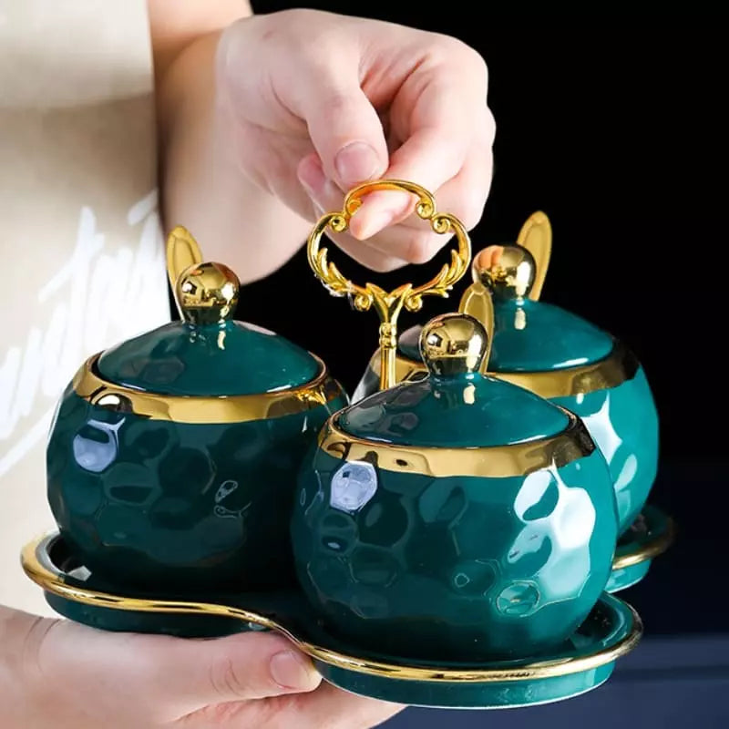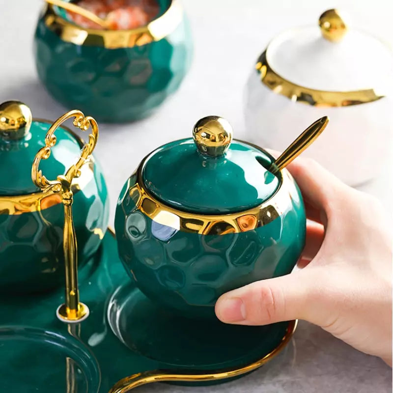 Conjunto de Potes de Cerâmica Kit Açucareiro e Saleiro