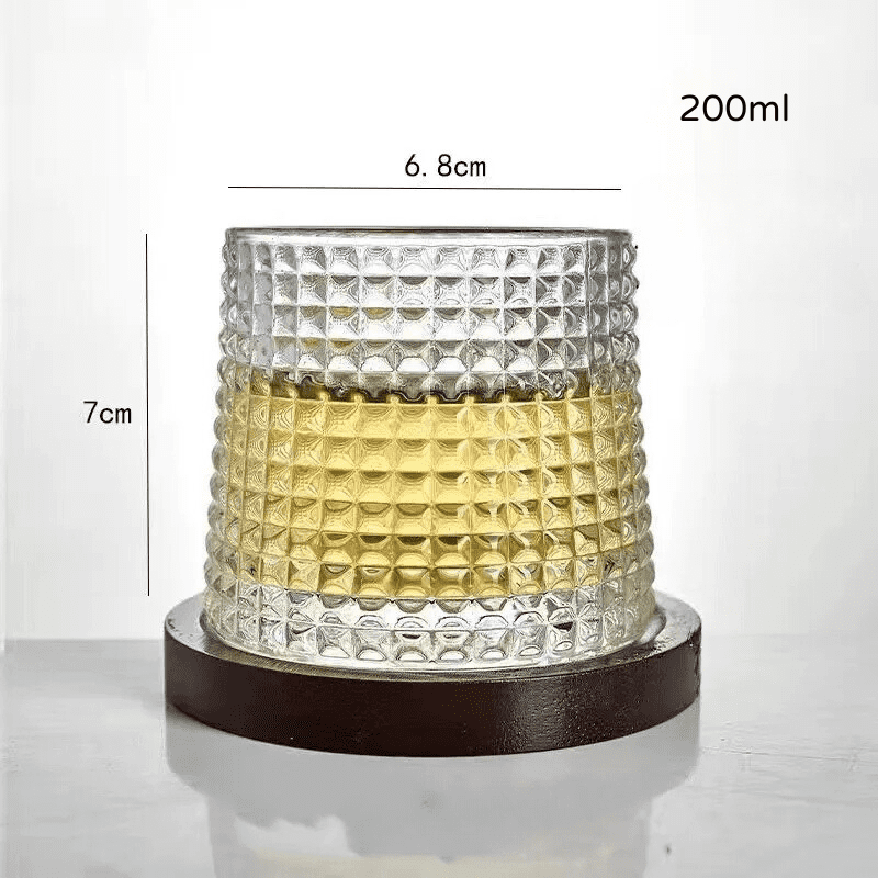 Copo de Whisky em Cristal com Base Rotativa em Madeira
