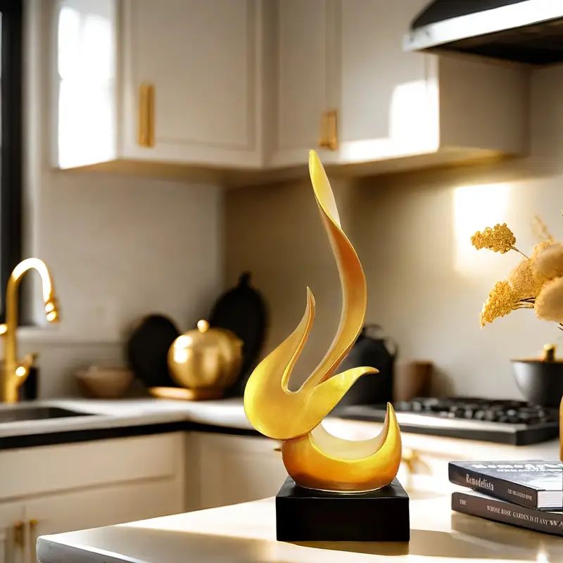 Escultura Abstrata de Chamas Em Resina Para Sala