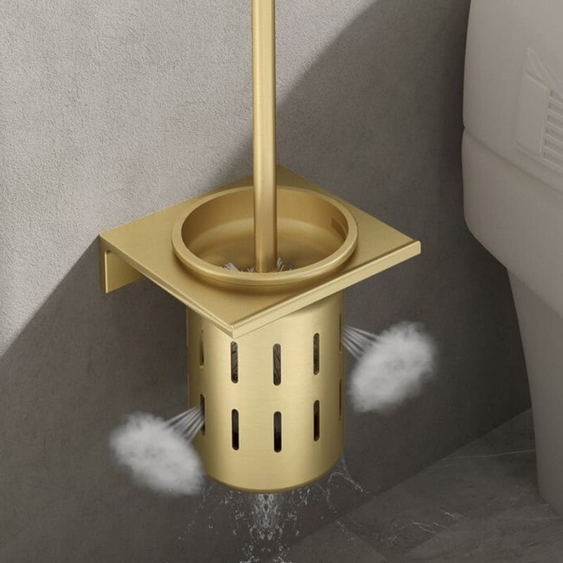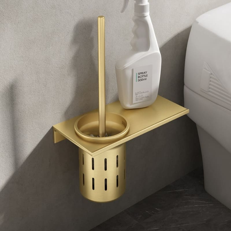 Escova Sanitária Com Suporte Em Alumínio Dourado Sofisticada