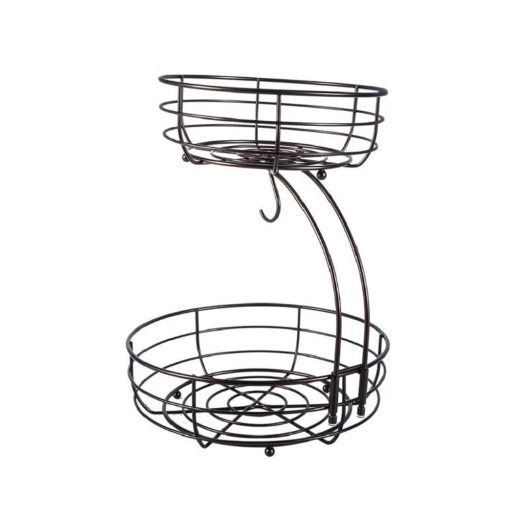 Fruteira De 2 Camadas Em Ferro Com Suporte Para Bananas