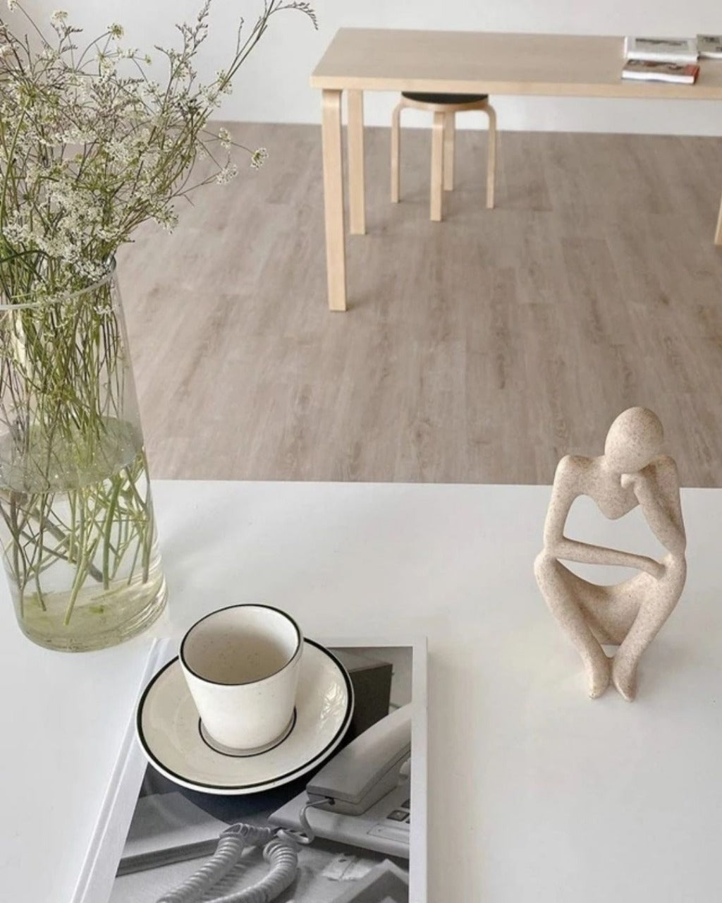Escultura O Pensador Abstrato Cor Areia Para Escritório e Sala