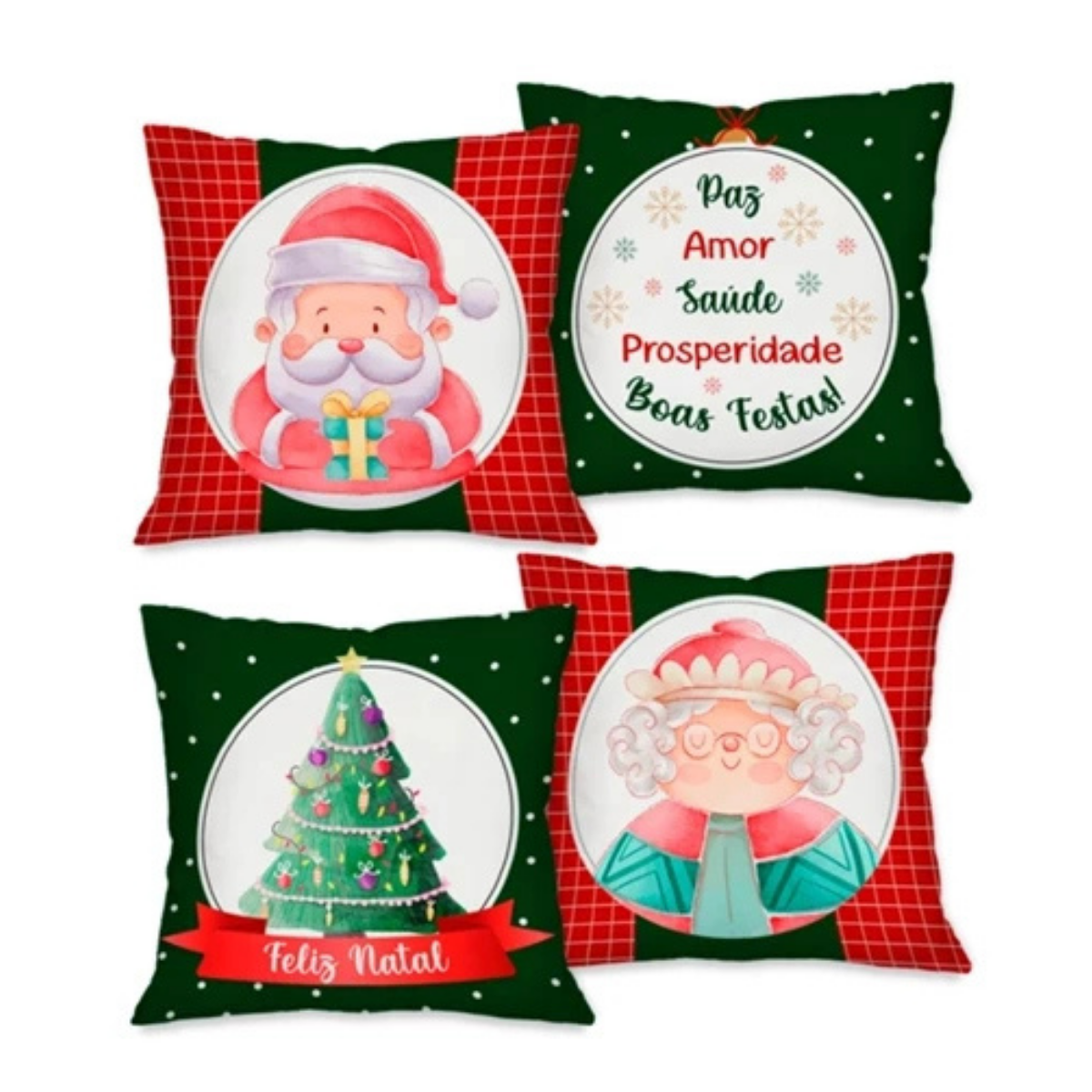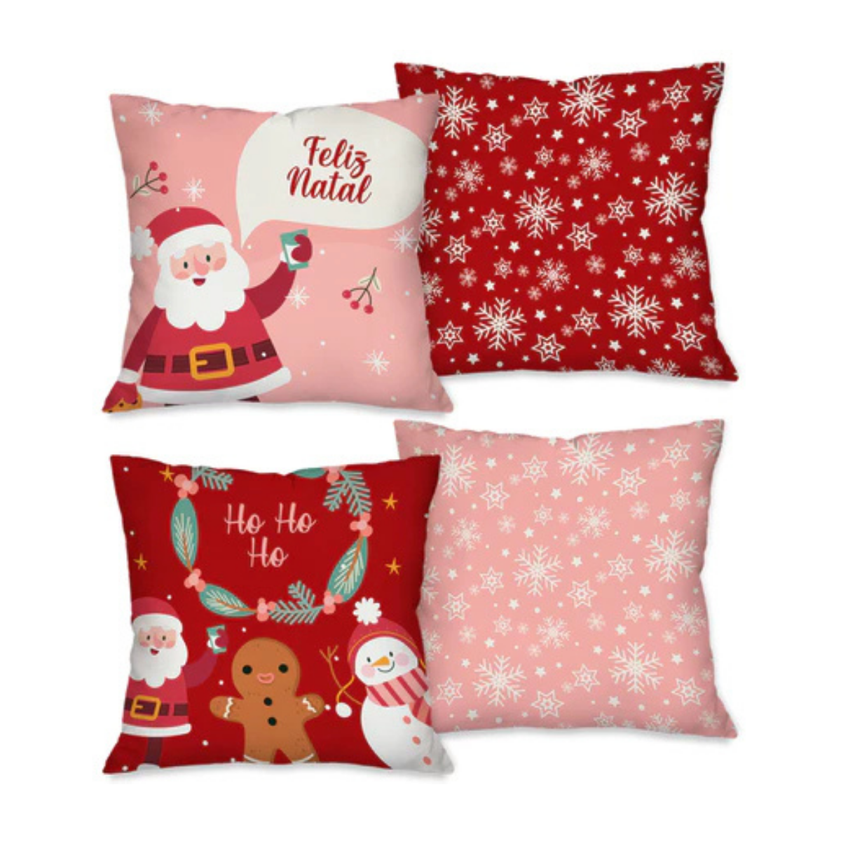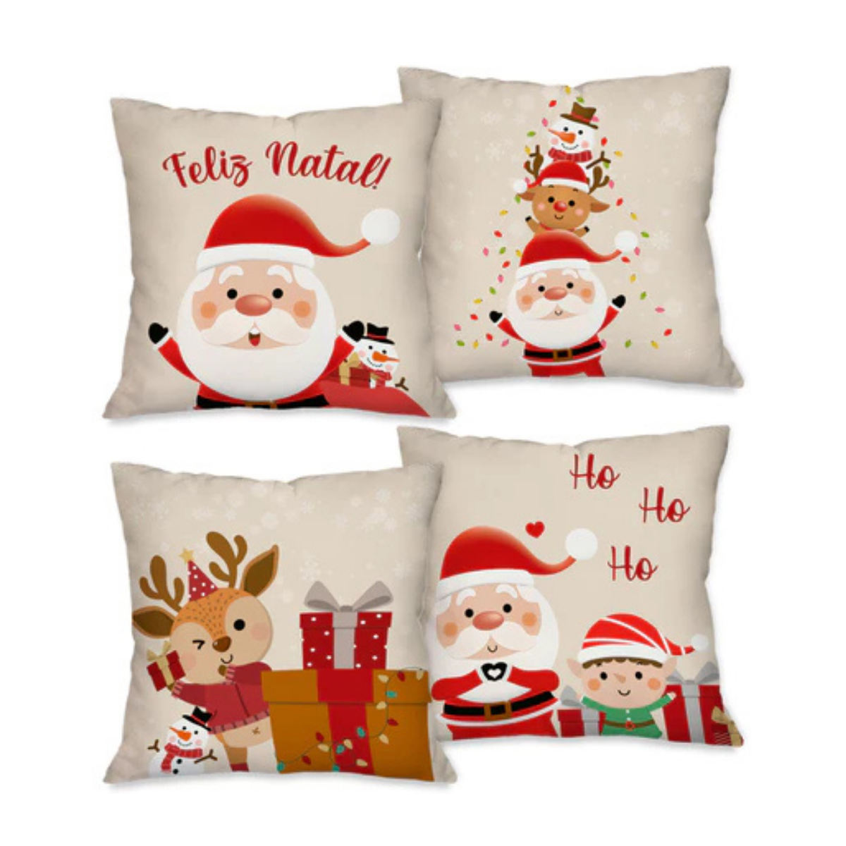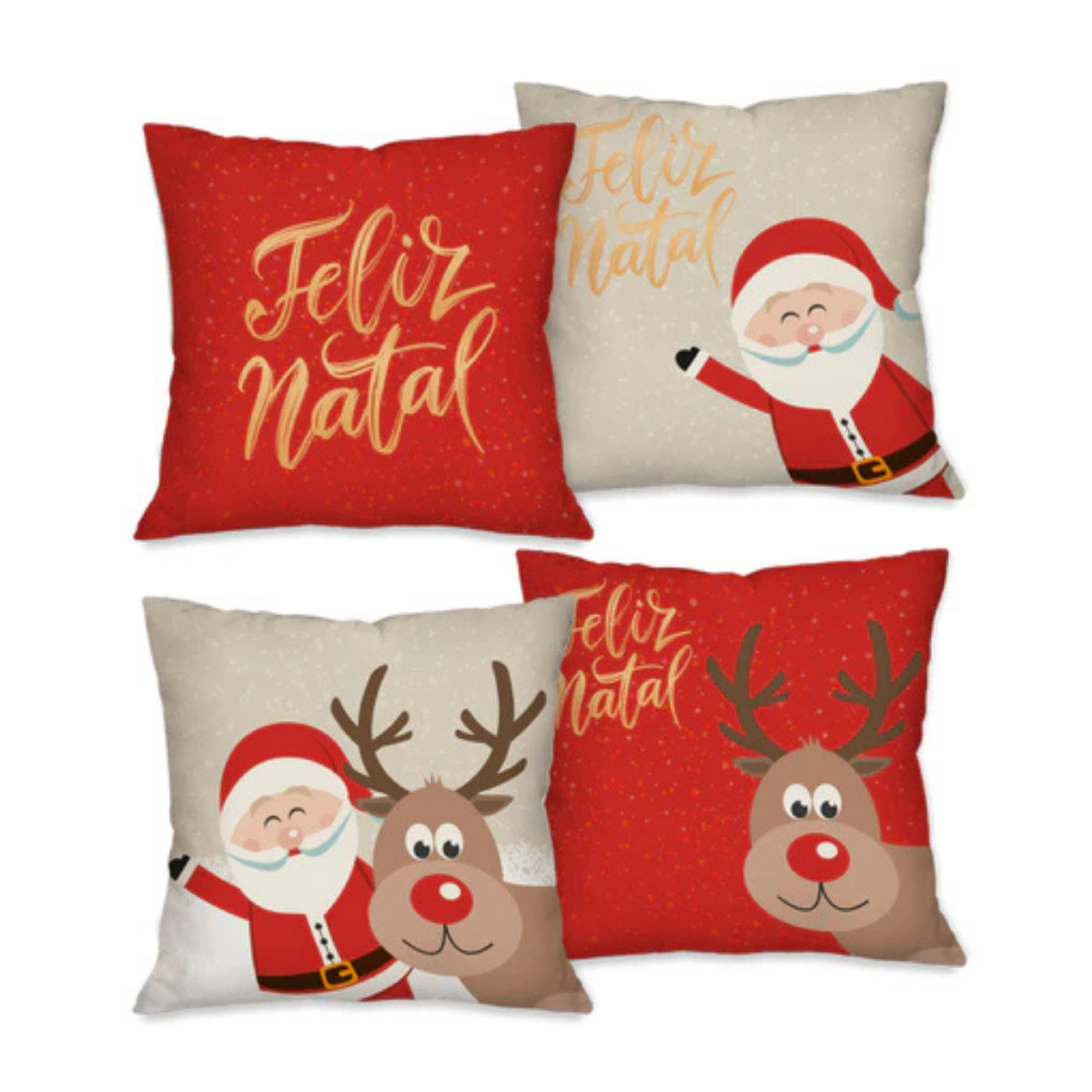 Kit 4 Capas Para Almofadas Natalinas Em Poliéster Premium