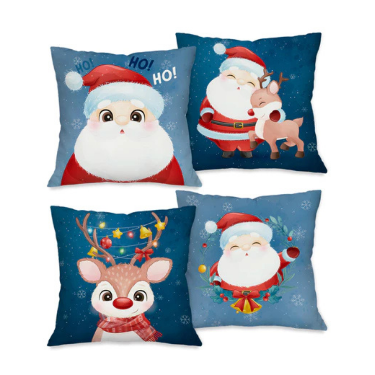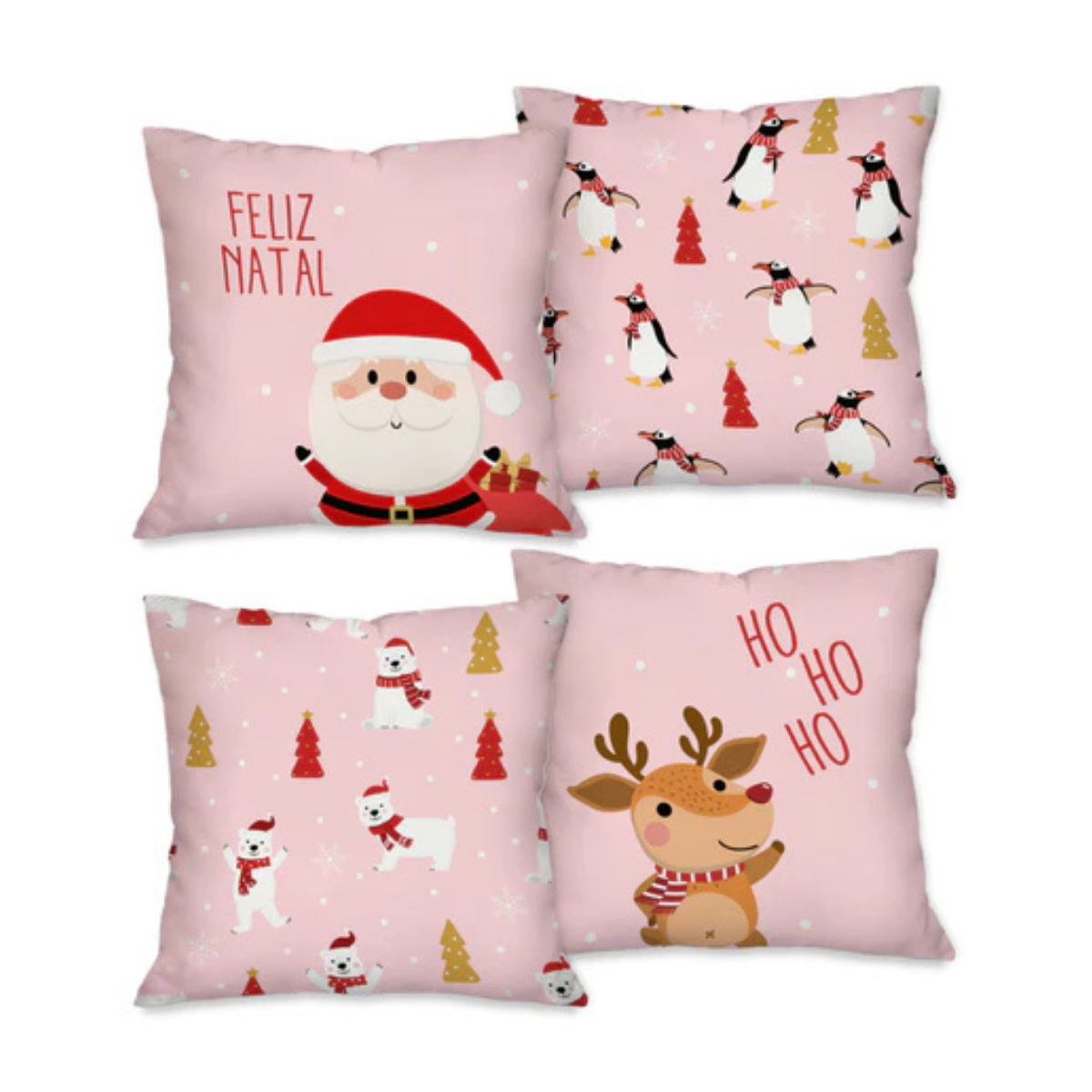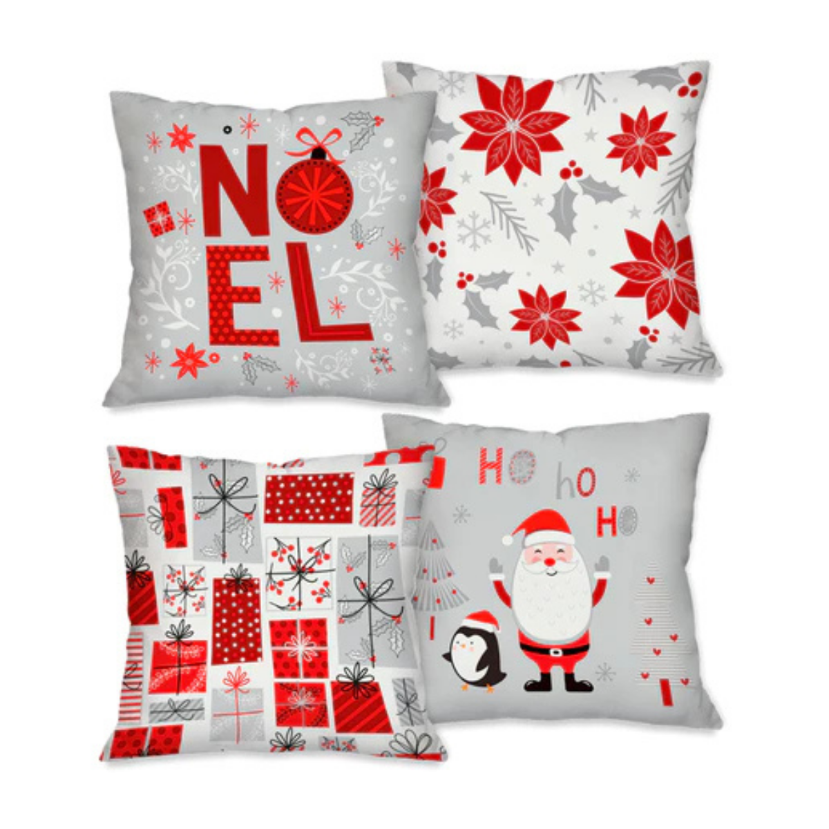 Kit 4 Capas Para Almofadas Natalinas Em Poliéster Premium