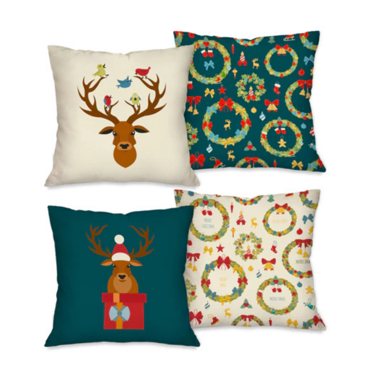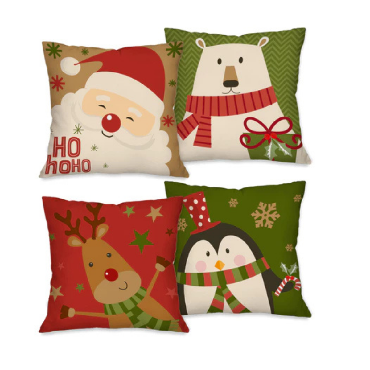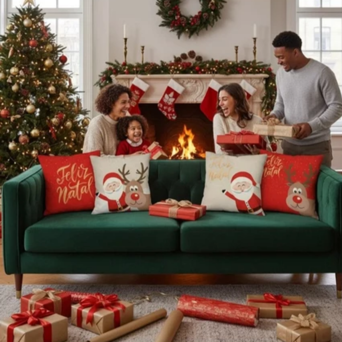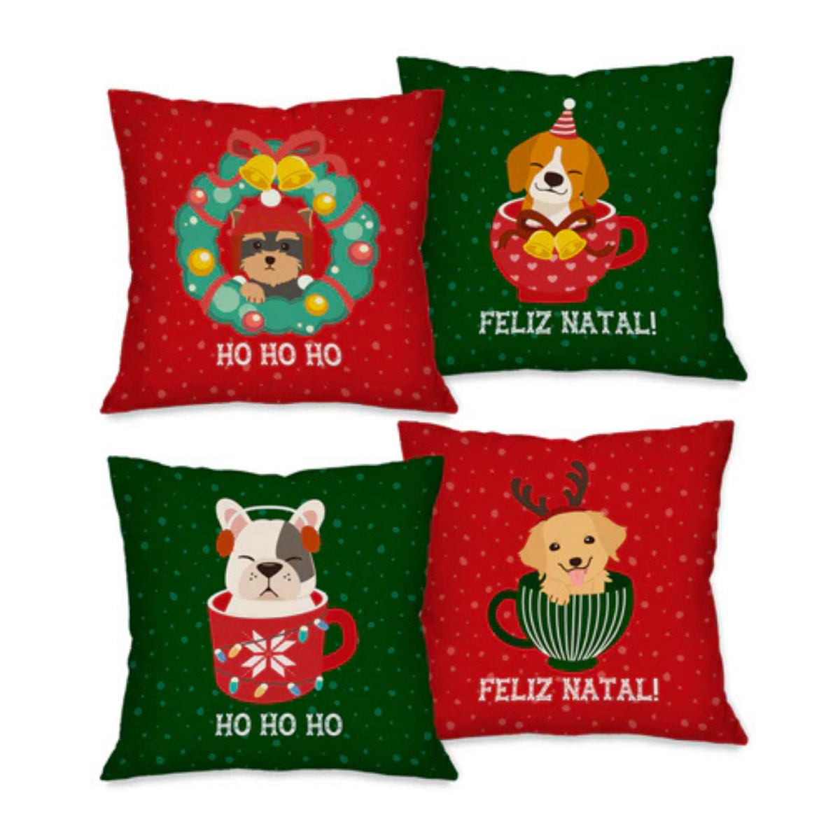 Kit 4 Capas Para Almofadas Natalinas Em Poliéster Premium