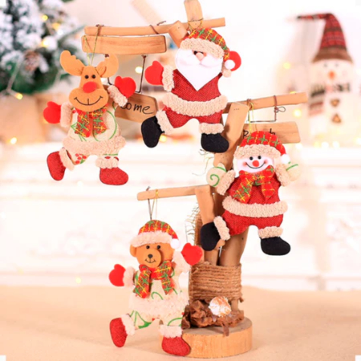 - Kit com 8 bonecos pendentes: rena, Papai Noel, boneco de neve e urso.