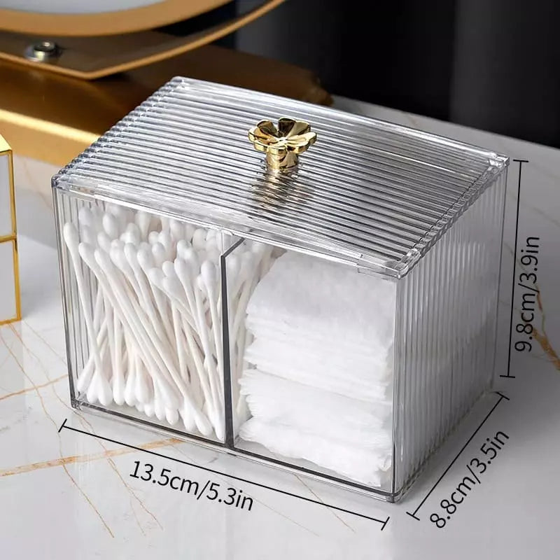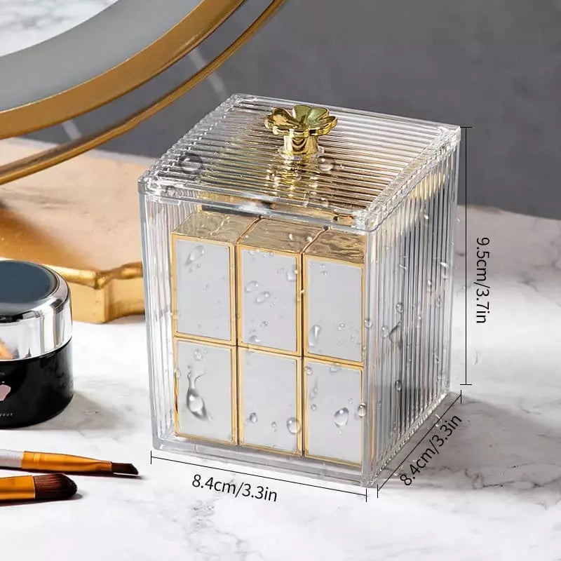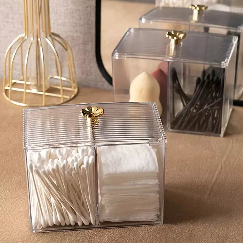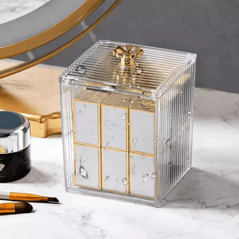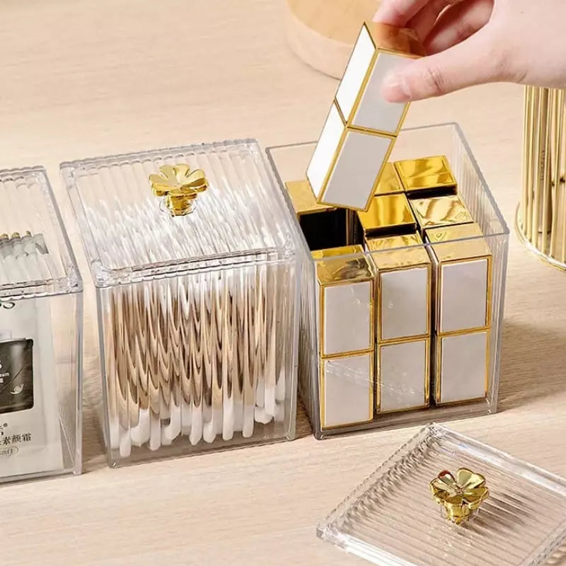 Organizador Cotonete e Algodão Acrílico Dourado com Tampa