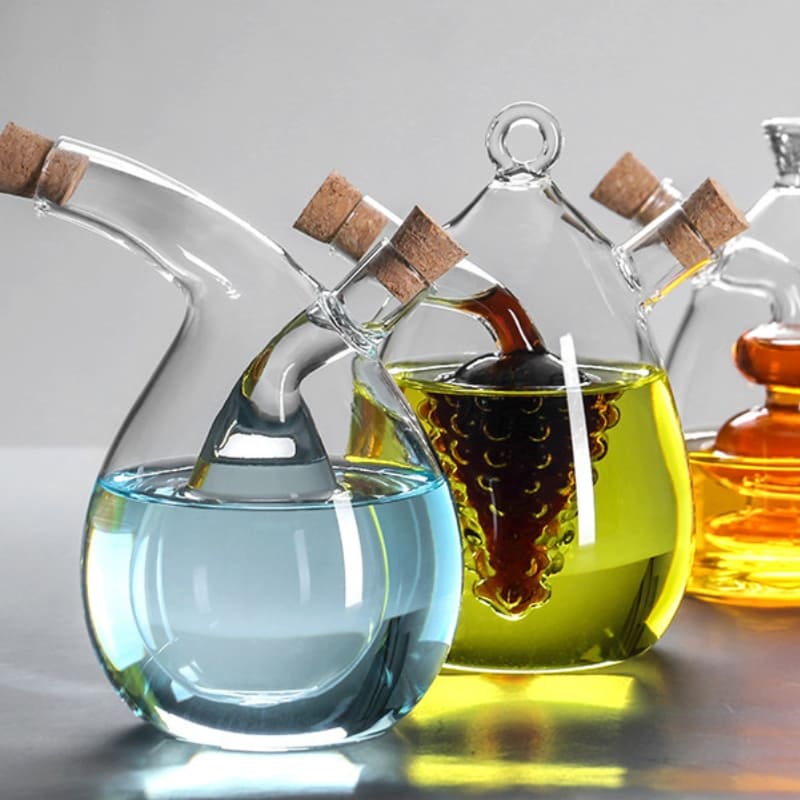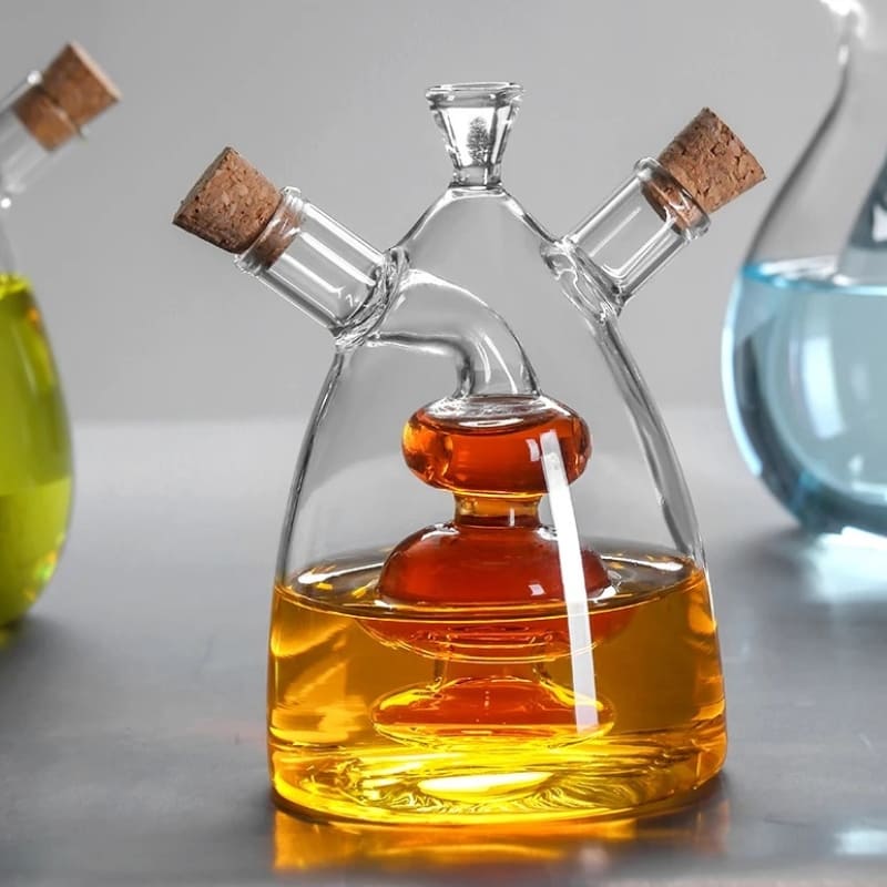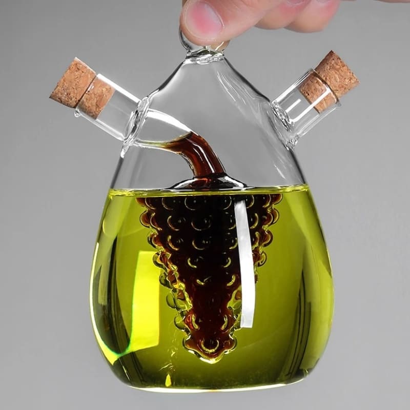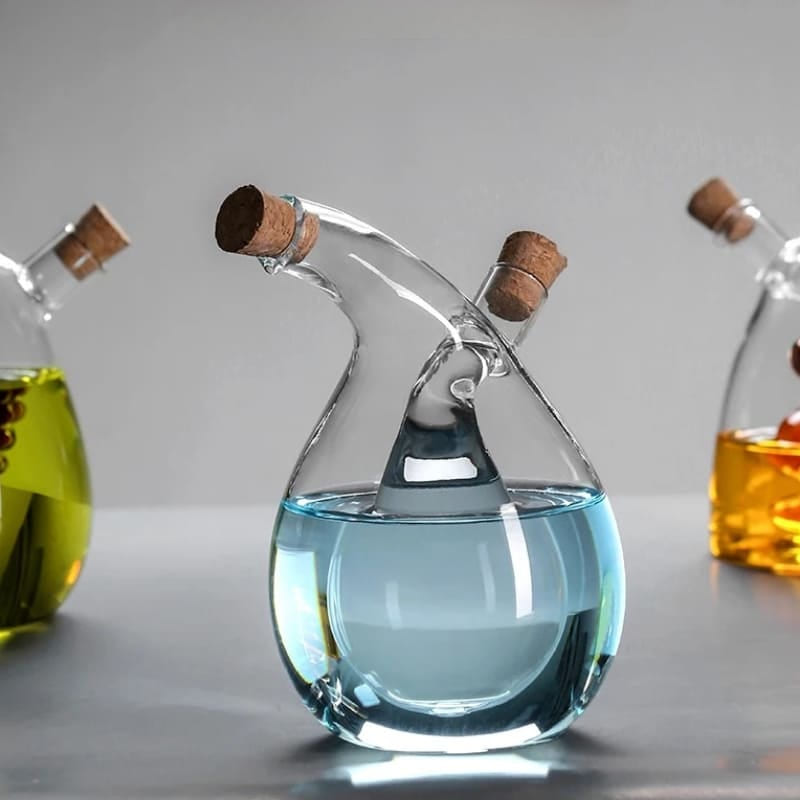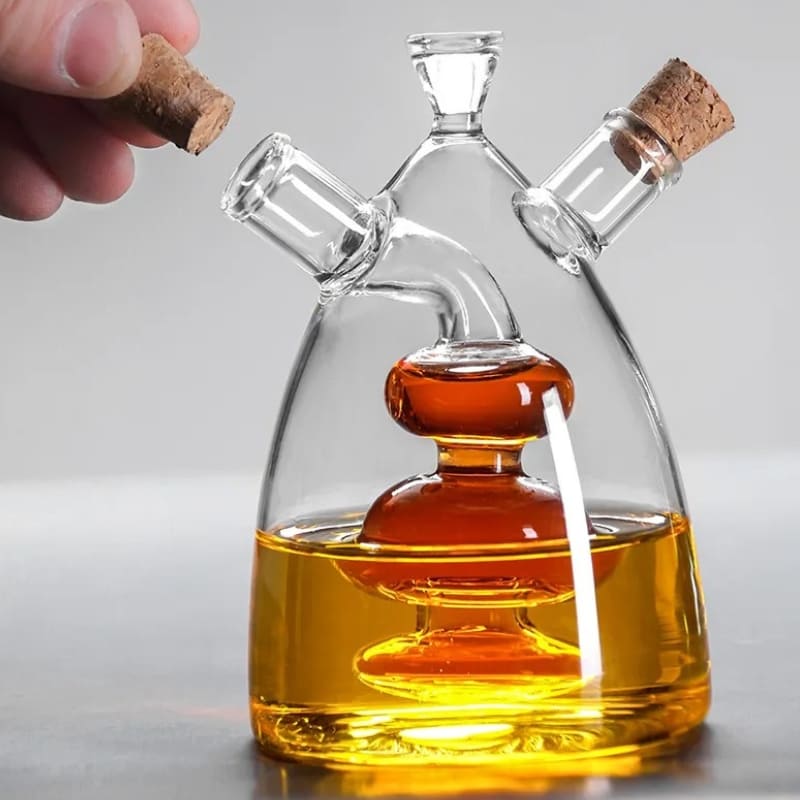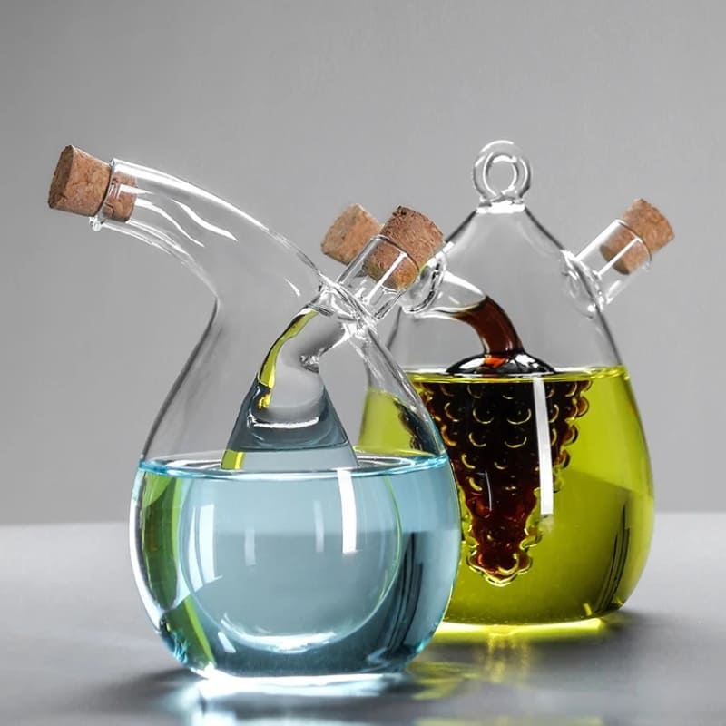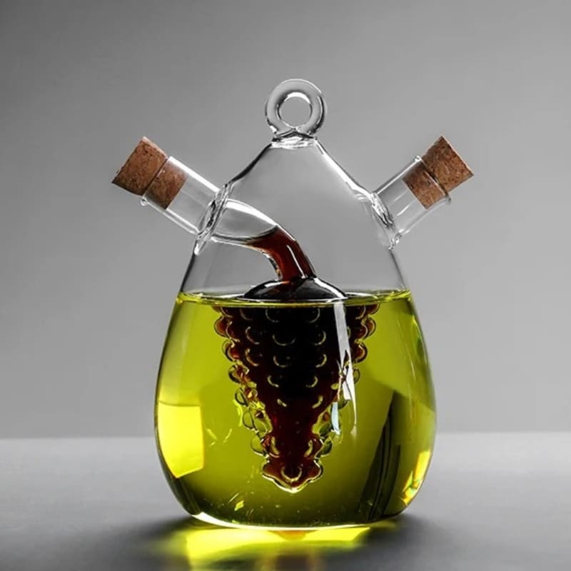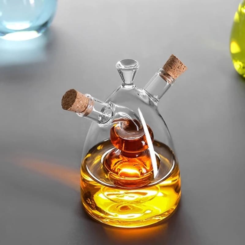 Porta Azeite e Vinagre em Vidro com Tampa de Cortiça 2 em 1