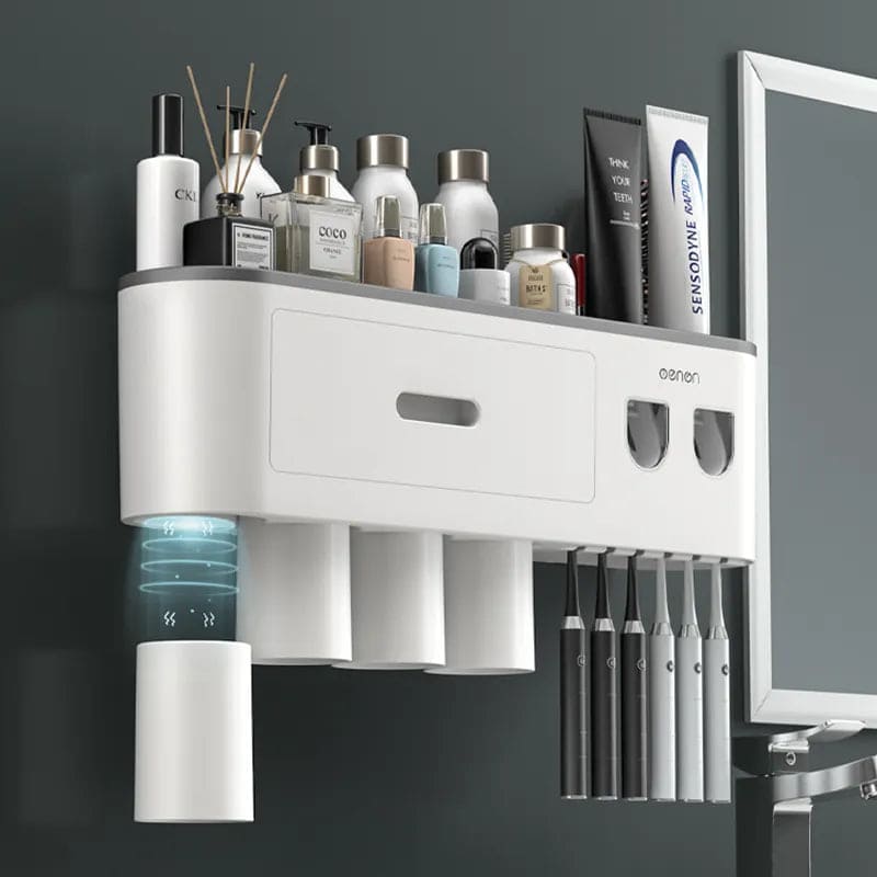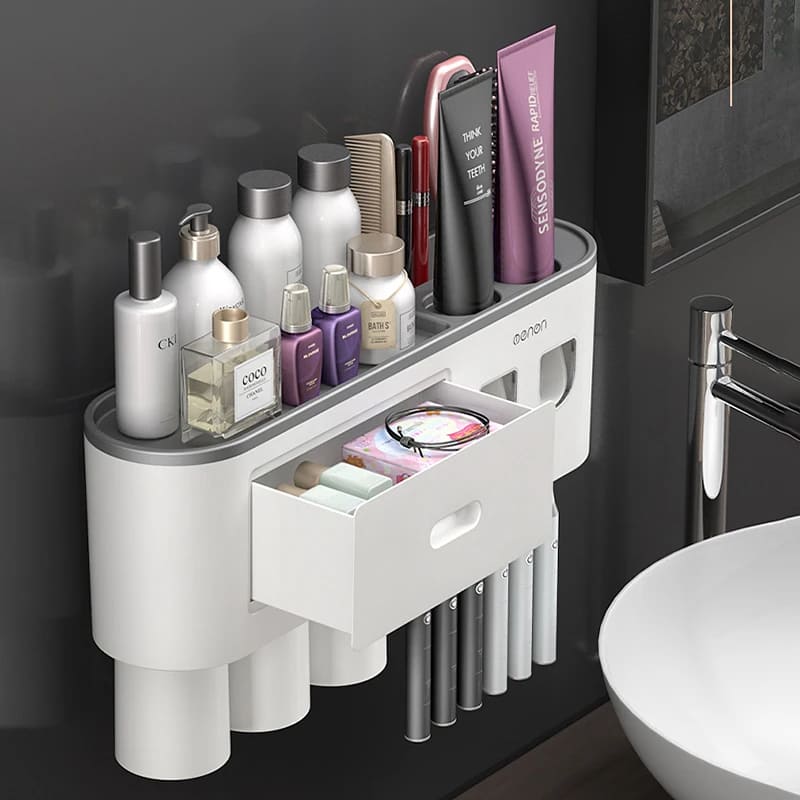 Porta Escova de Dente Dispenser com Gaveta e Copos Compacto