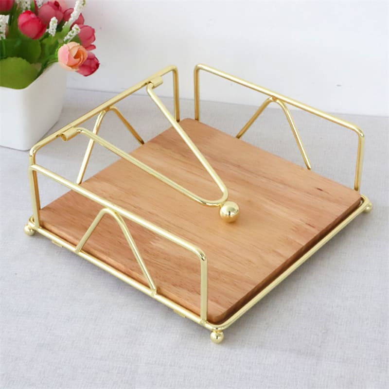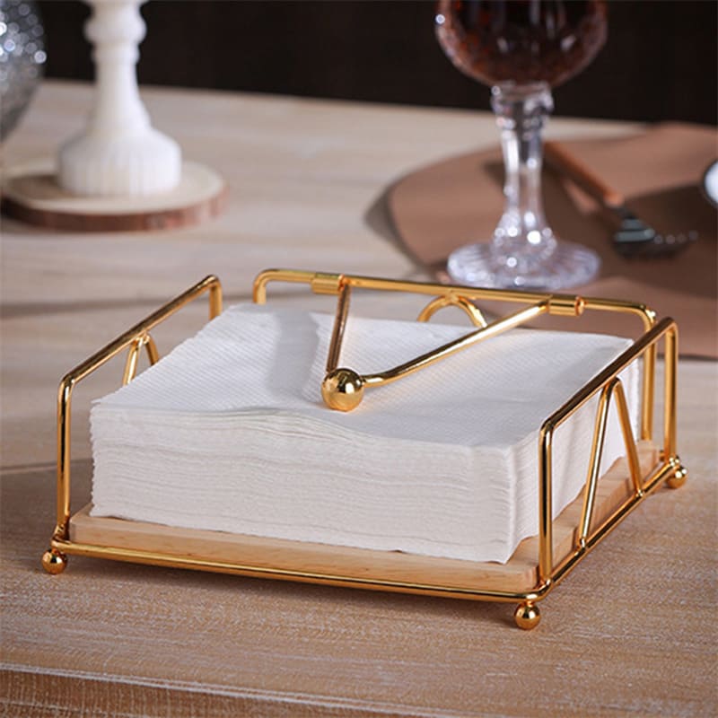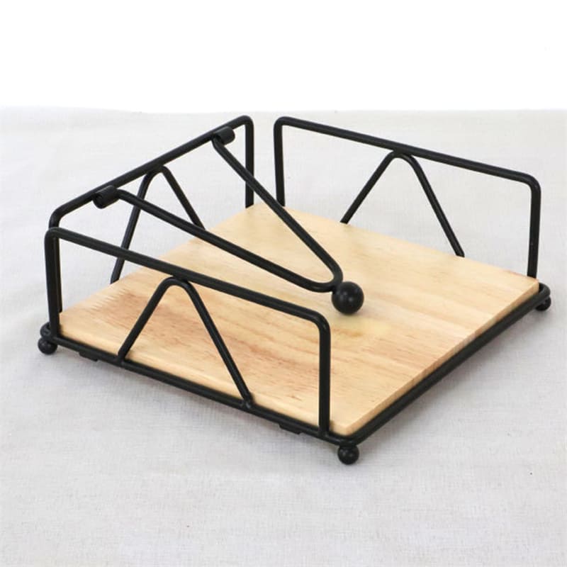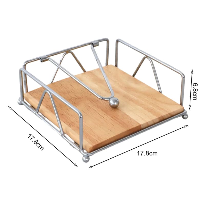Porta-Guardanapo De Mesa Em Aço Inox E Madeira Nobre