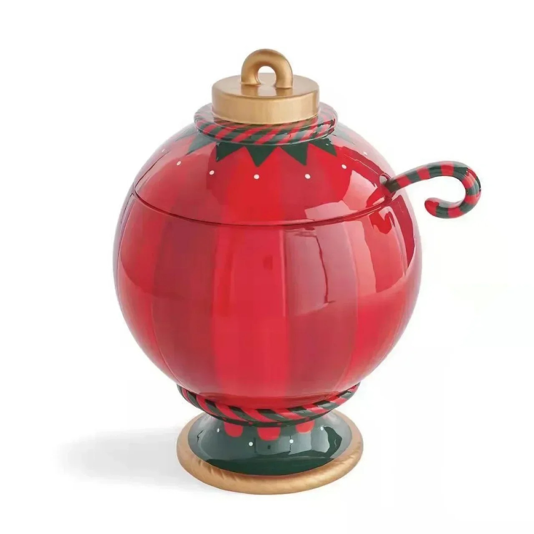 Pote de Natal em Resina Camada Dupla Formato Bola Elegante