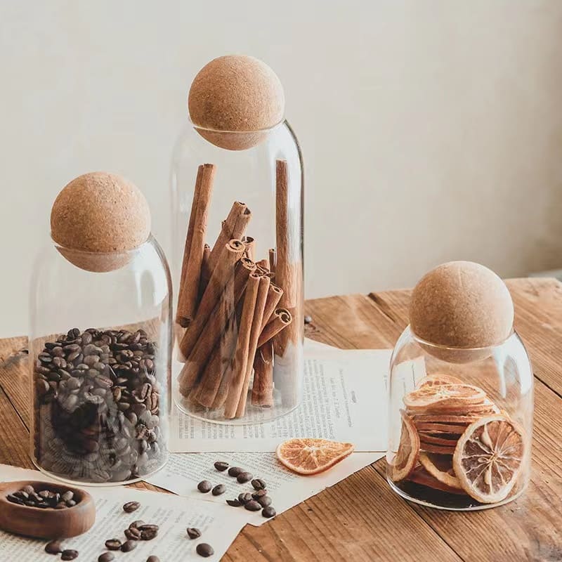 Potes de Vidro Borossilicato com Tampa de Cortiça