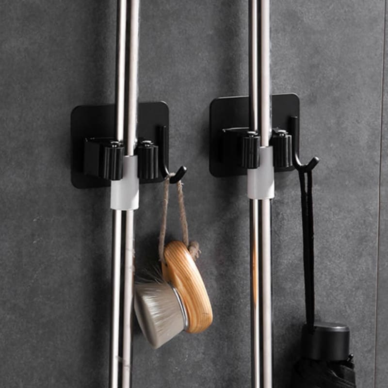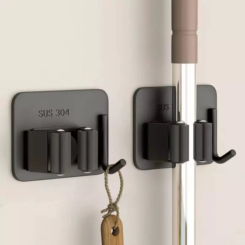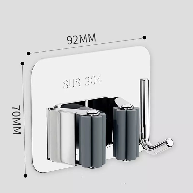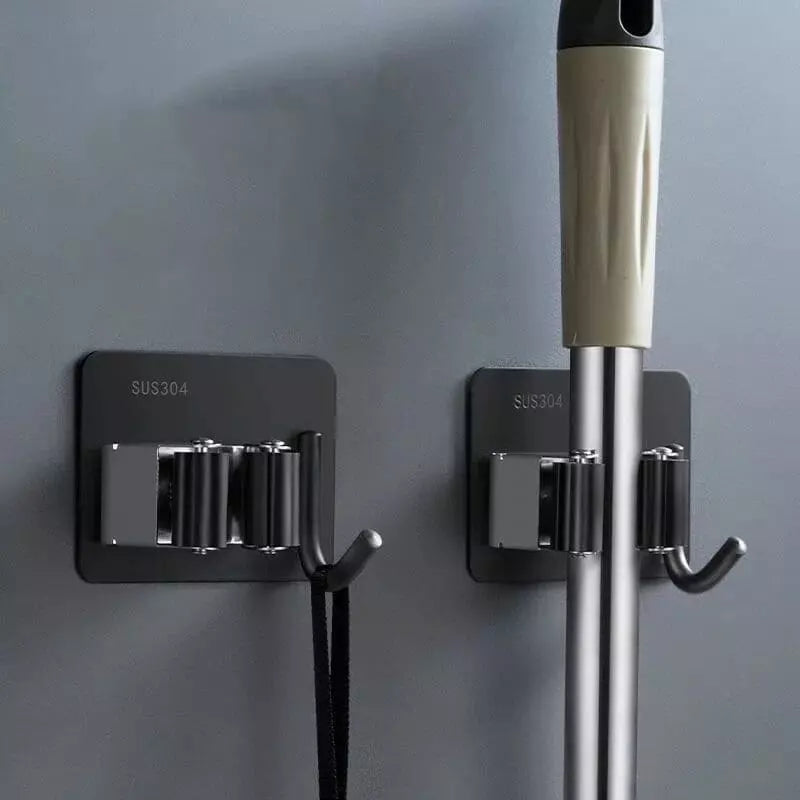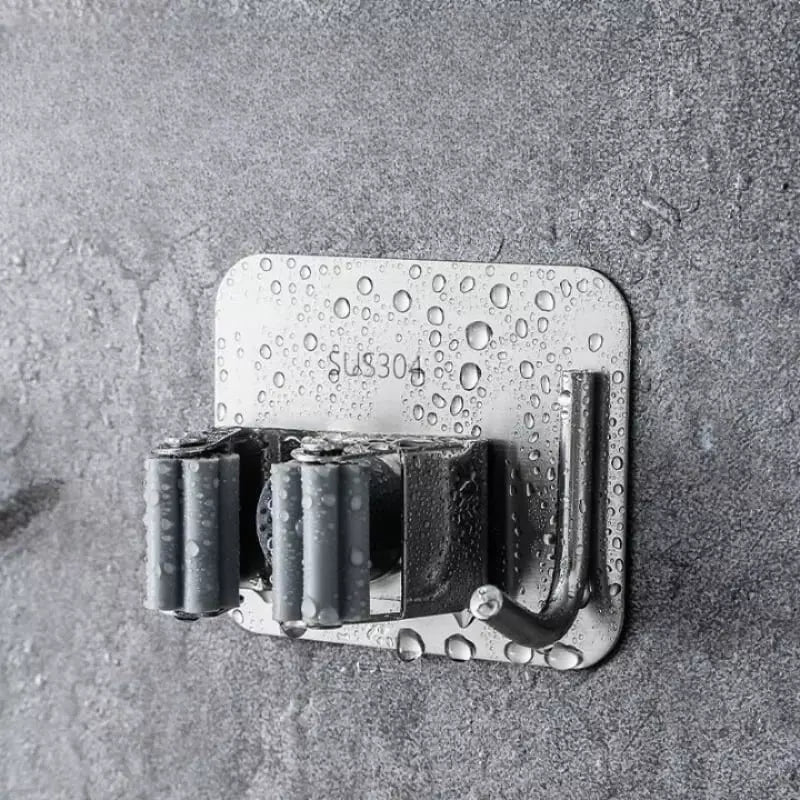 Suporte de Vassoura em Aço Inox e Adesivo de Parede