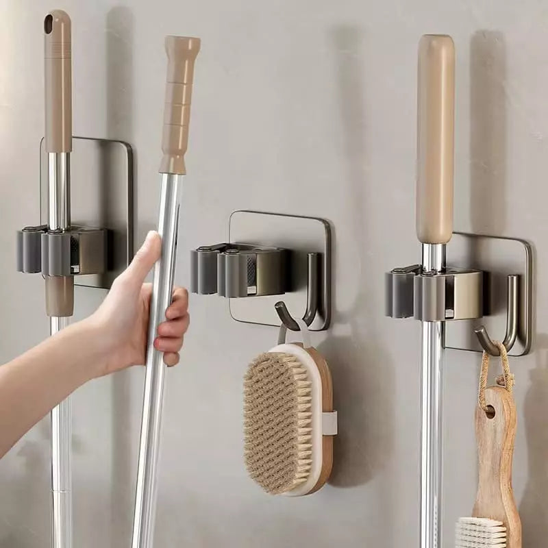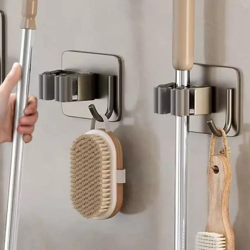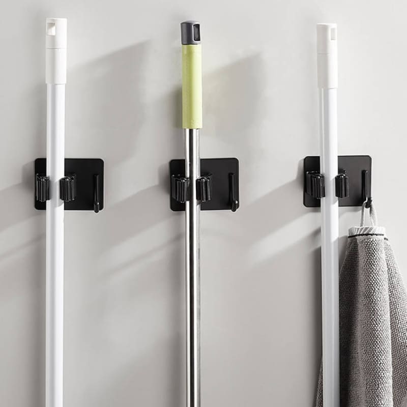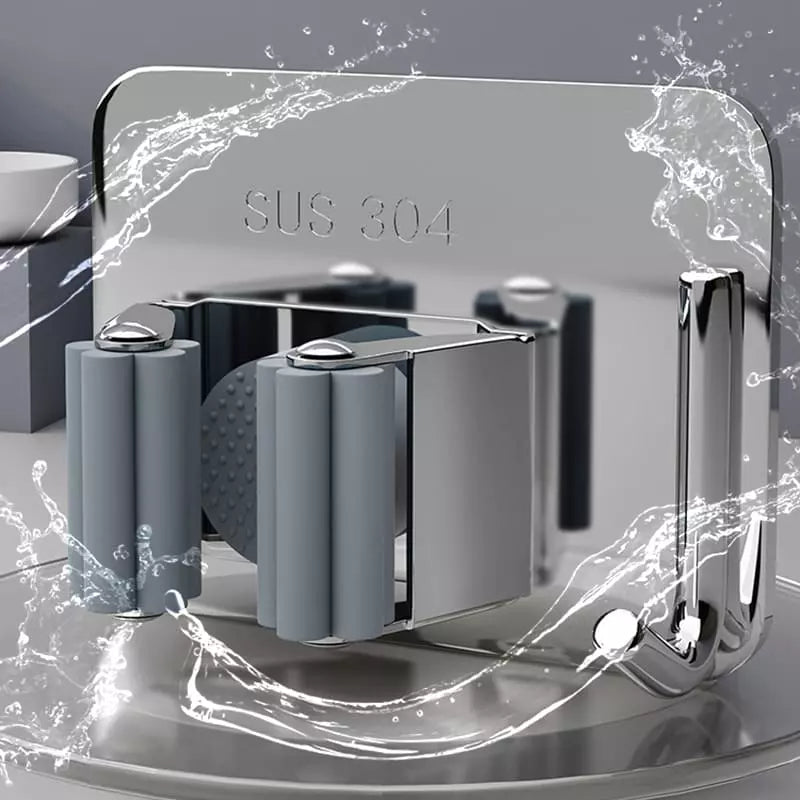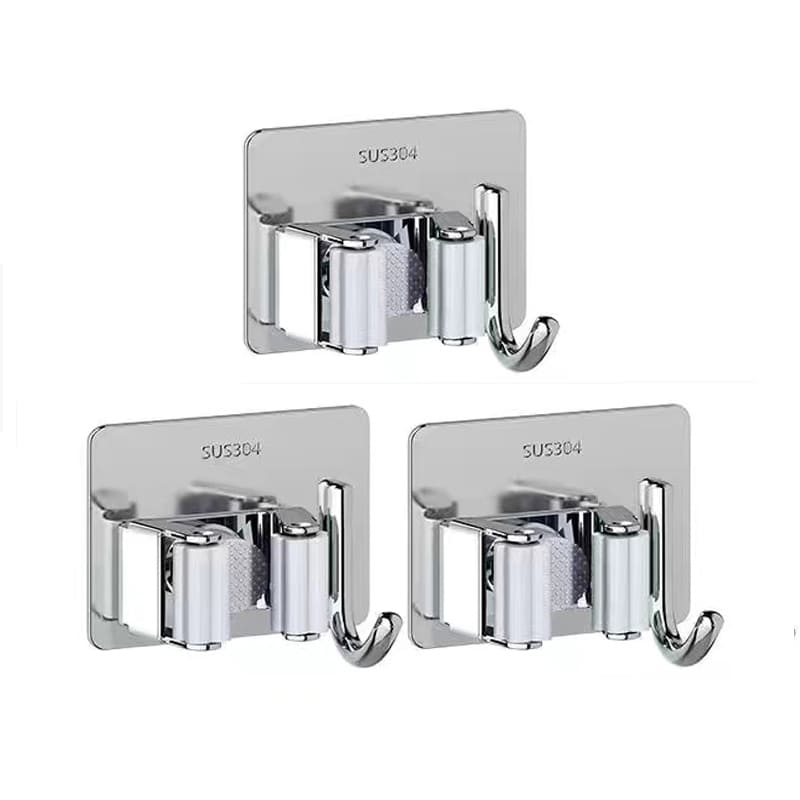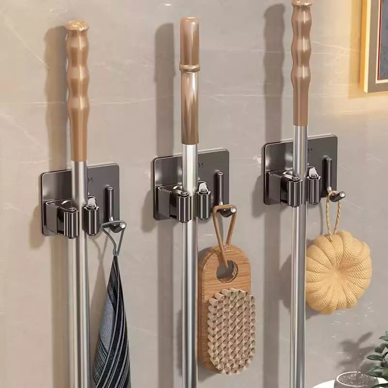 Suporte de Vassoura em Aço Inox e Adesivo de Parede