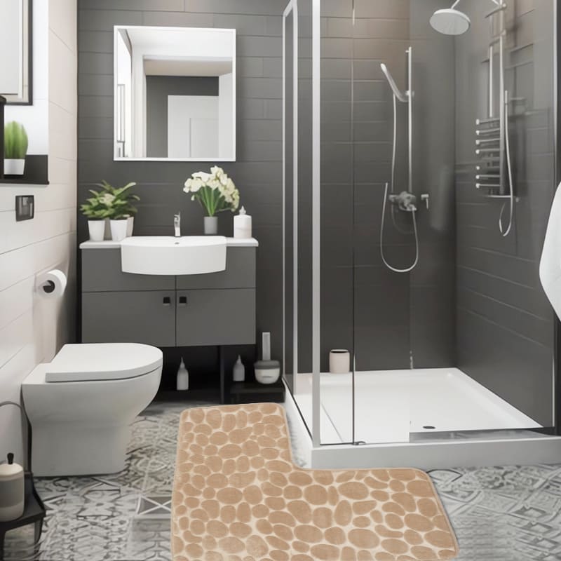 Tapete de Banheiro em Veludo Antiderrapante Formato L