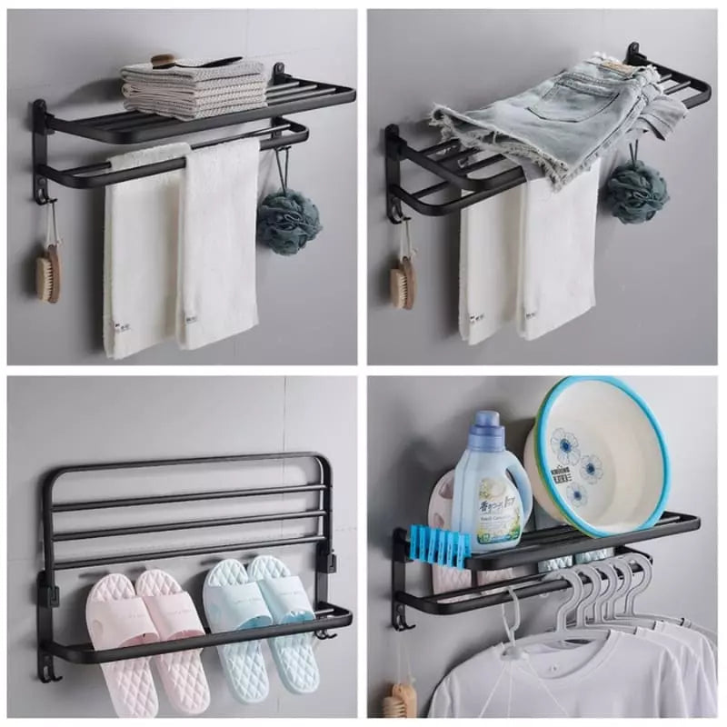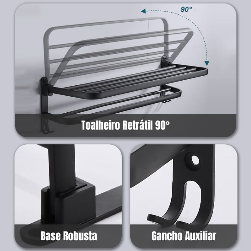 Toalheiro Duplo Retrátil Em Alumínio Durável Para Banho