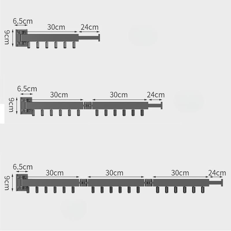 Varal Retrátil de Parede em Alumínio 3 Tamanhos com Ganchos