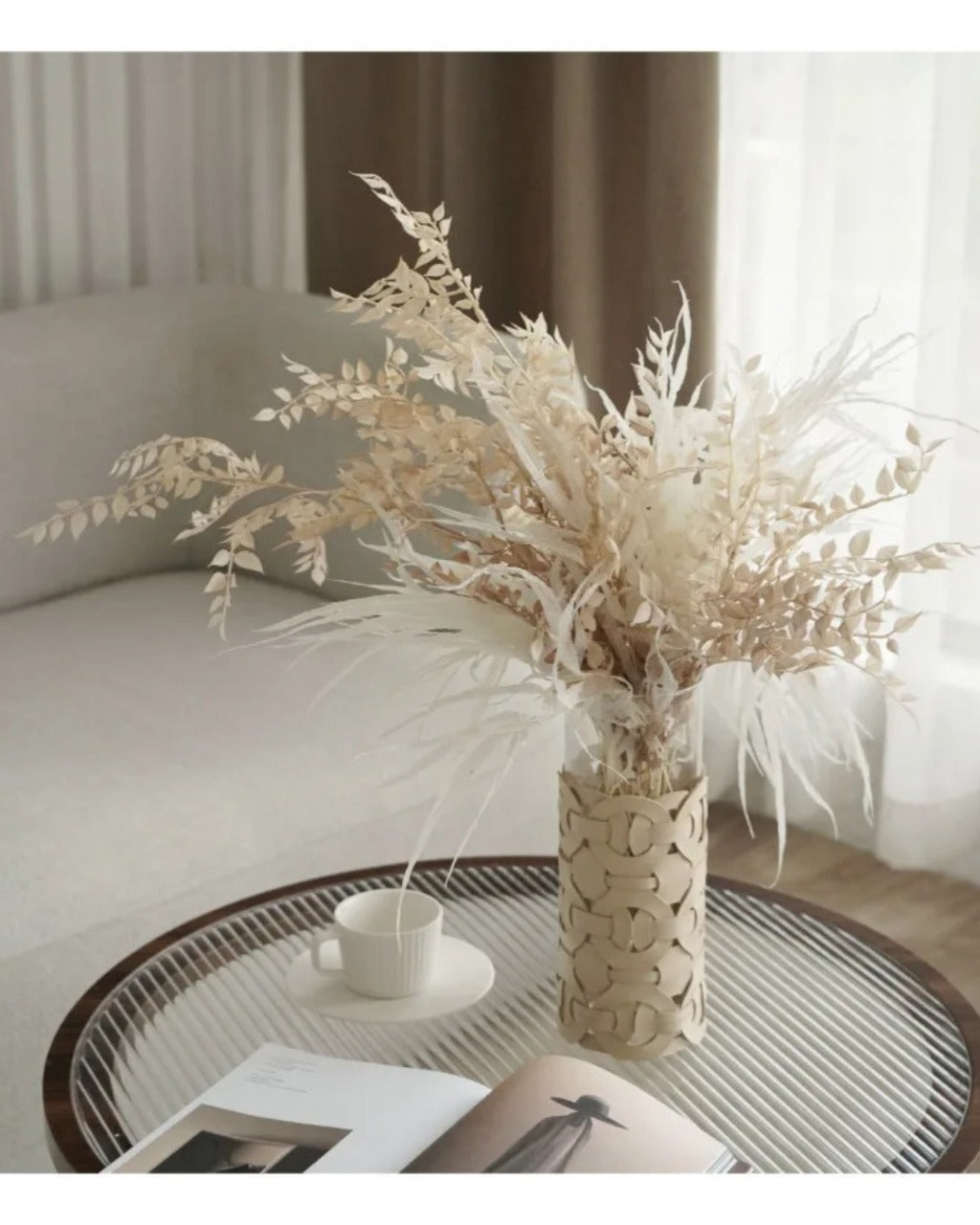 Leve elegância e originalidade à sua decoração com o Vaso de Vidro com Detalhe em Couro Trançado. Seu design moderno e transparente cria um contraste sofisticado com a textura do couro, tornando-o perfeito para arranjos florais ou como peça decorativa sobre mesas, aparadores ou estantes. Versátil, combina facilmente com ambientes contemporâneos, minimalistas ou rústicos. Ideal para quem valoriza beleza, funcionalidade e estilo em cada detalhe do lar.